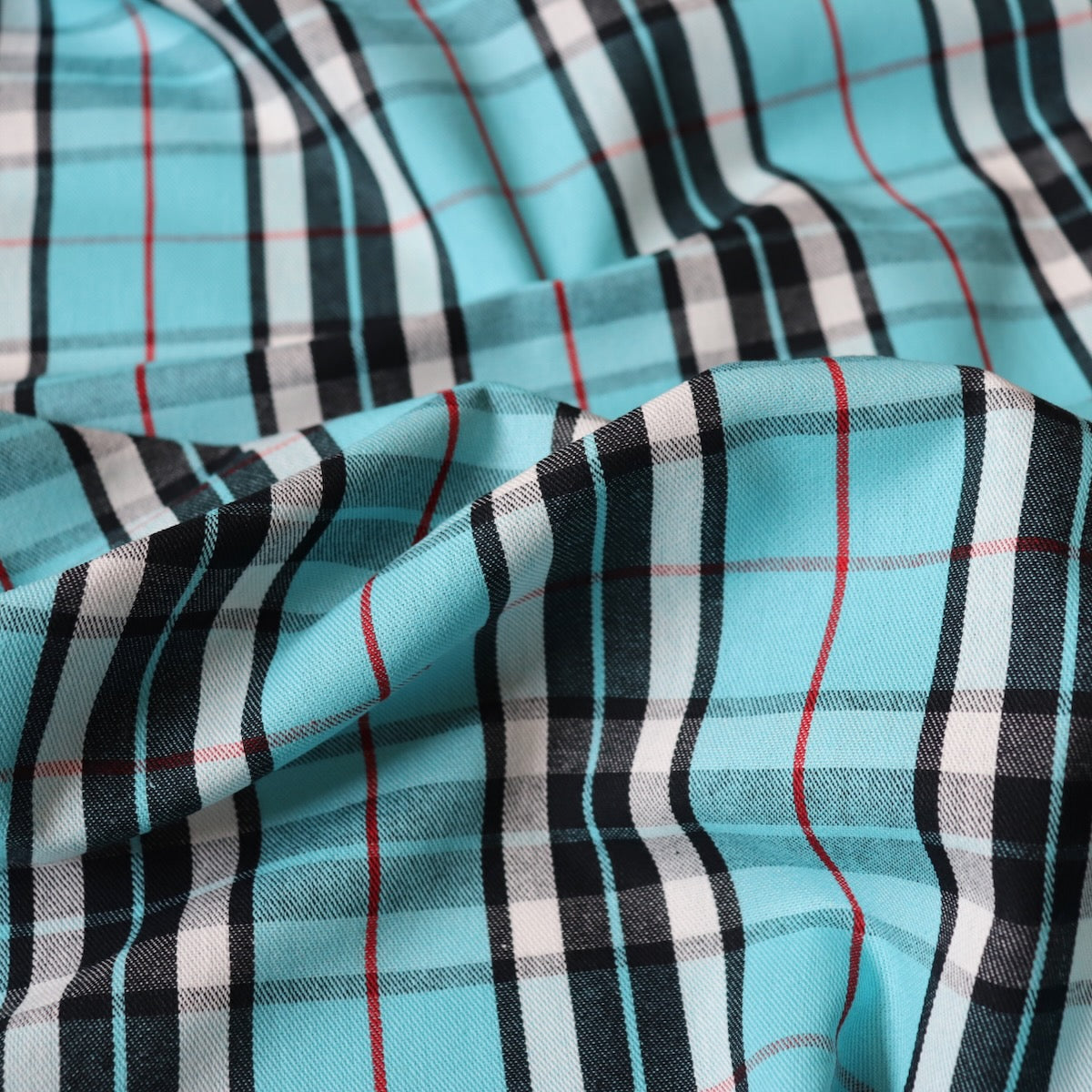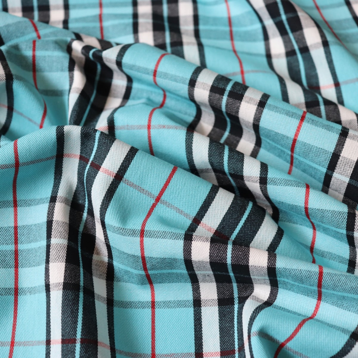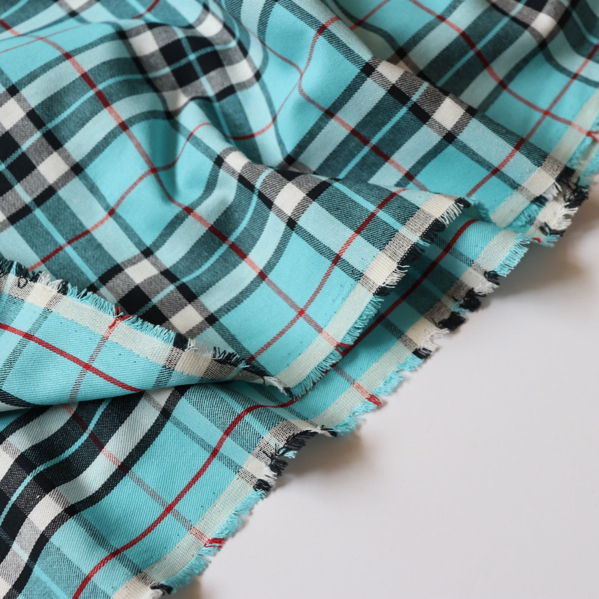 Autumn calls for colorful plaids. Bright blue with a red overcheck, this is a yarn-dyed cotton twill. Lighter mid-weight and slightly crisp with a dry touch. Make a structured shirt or dress, trousers, or a soft jacket like the Kusuma Jacket pattern from Sew Different. The repeat measures about 3.5 x 4 inches.