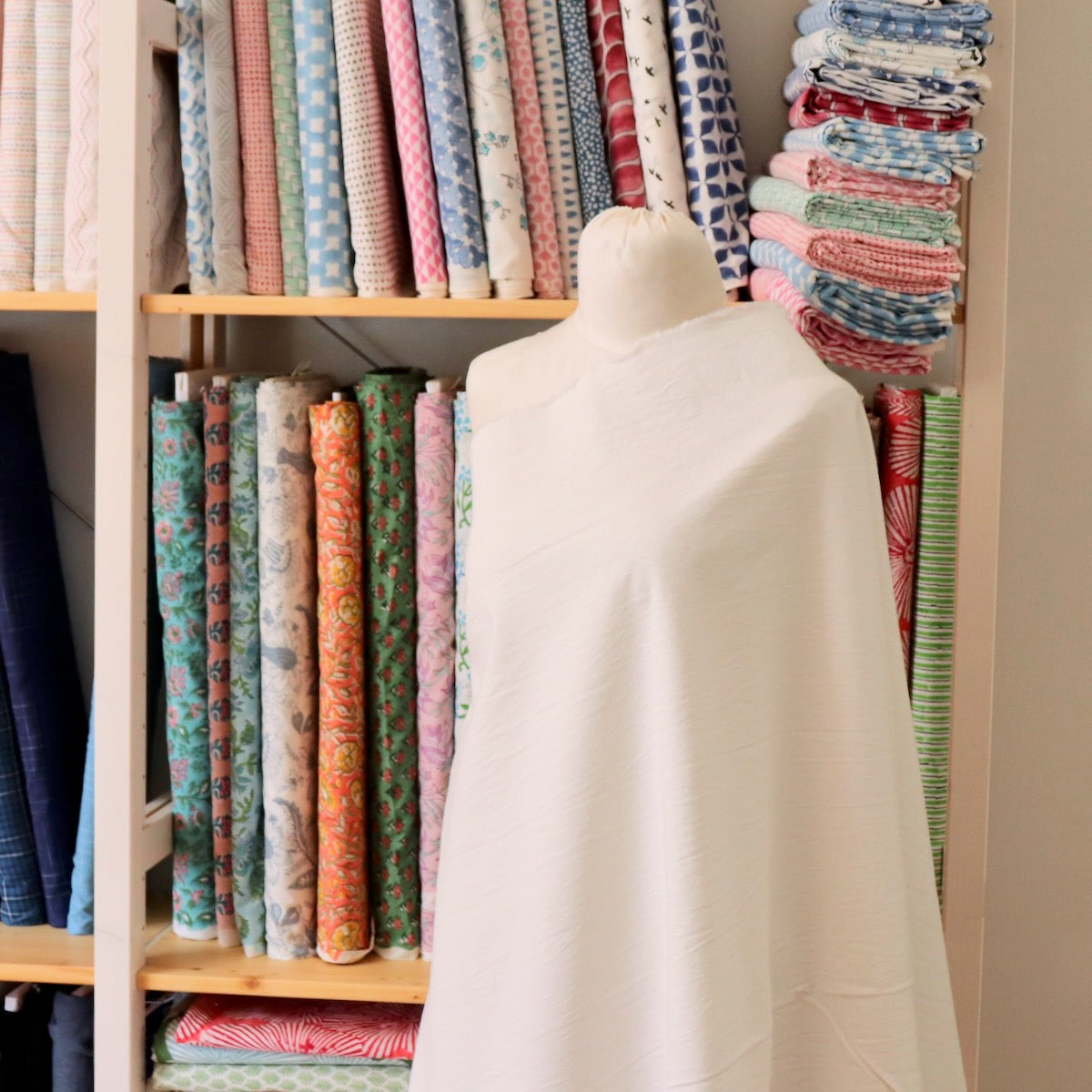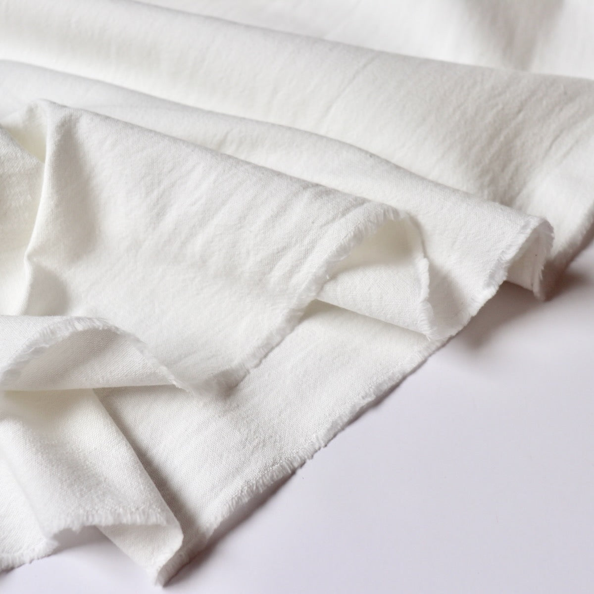 This mid-weight canvas is soft to the touch, with a pre-washed feel like a favorite garment that's been broken in just right. Gentle off-white in color, with a great texture and drape from the hint of linen. Perfect for jackets, overalls, and bags, or try the Jones Trousers from Goldfinch Textile Studio.