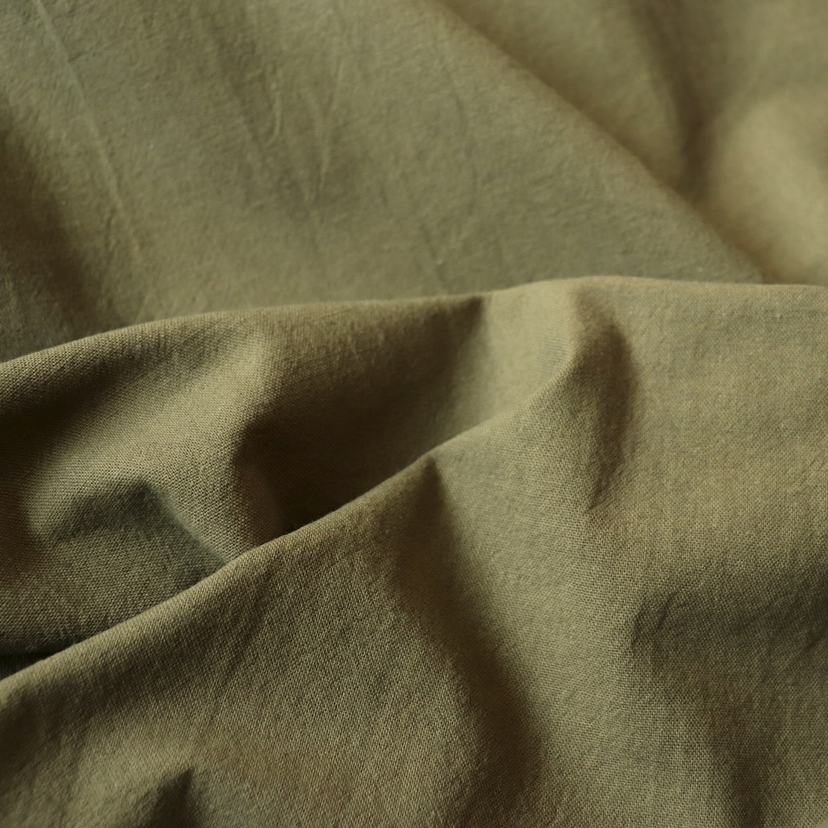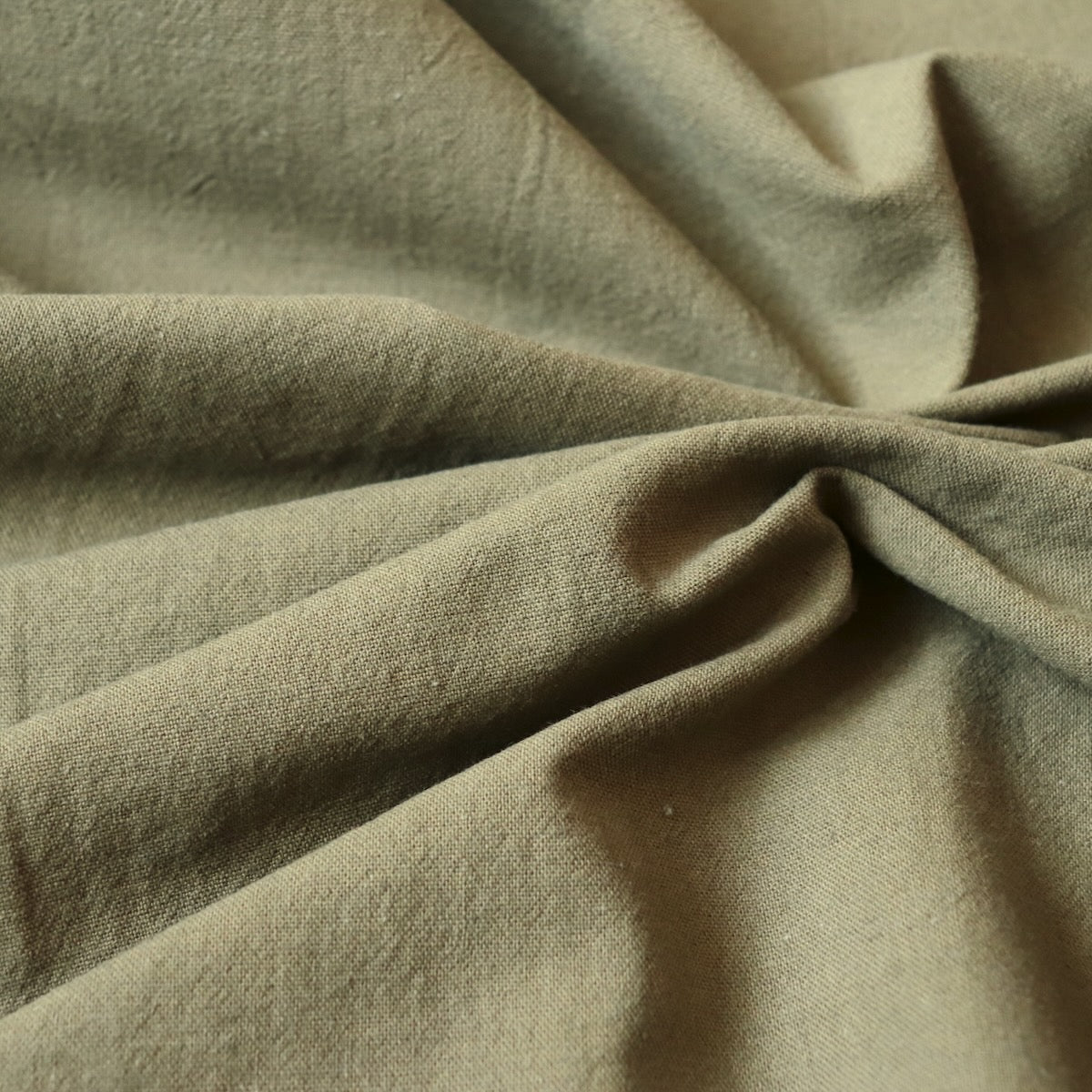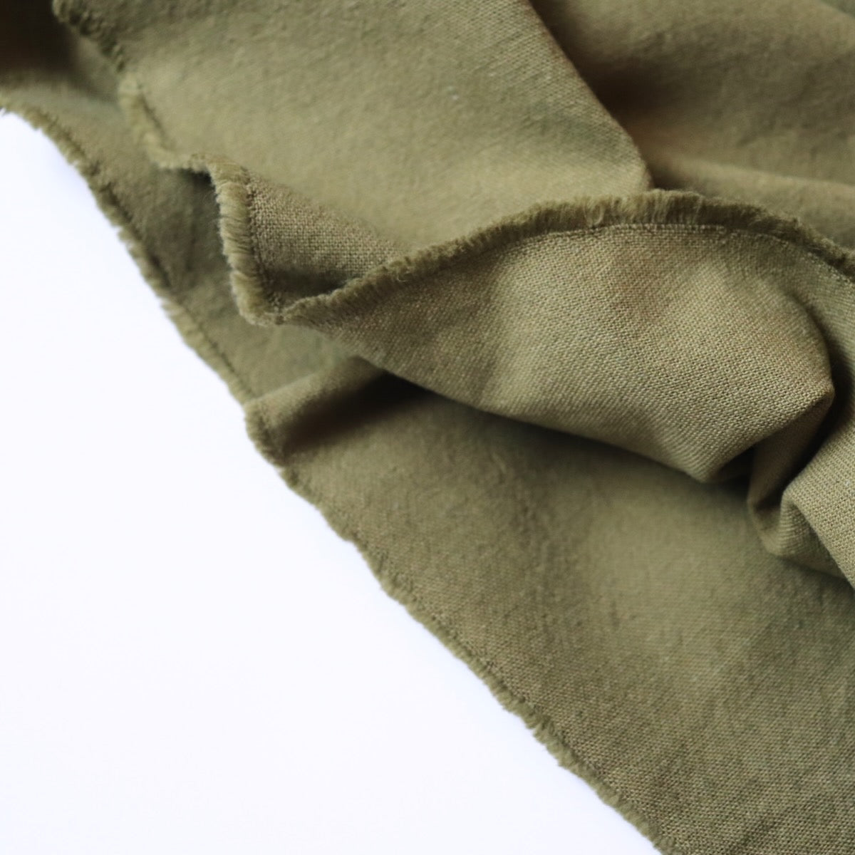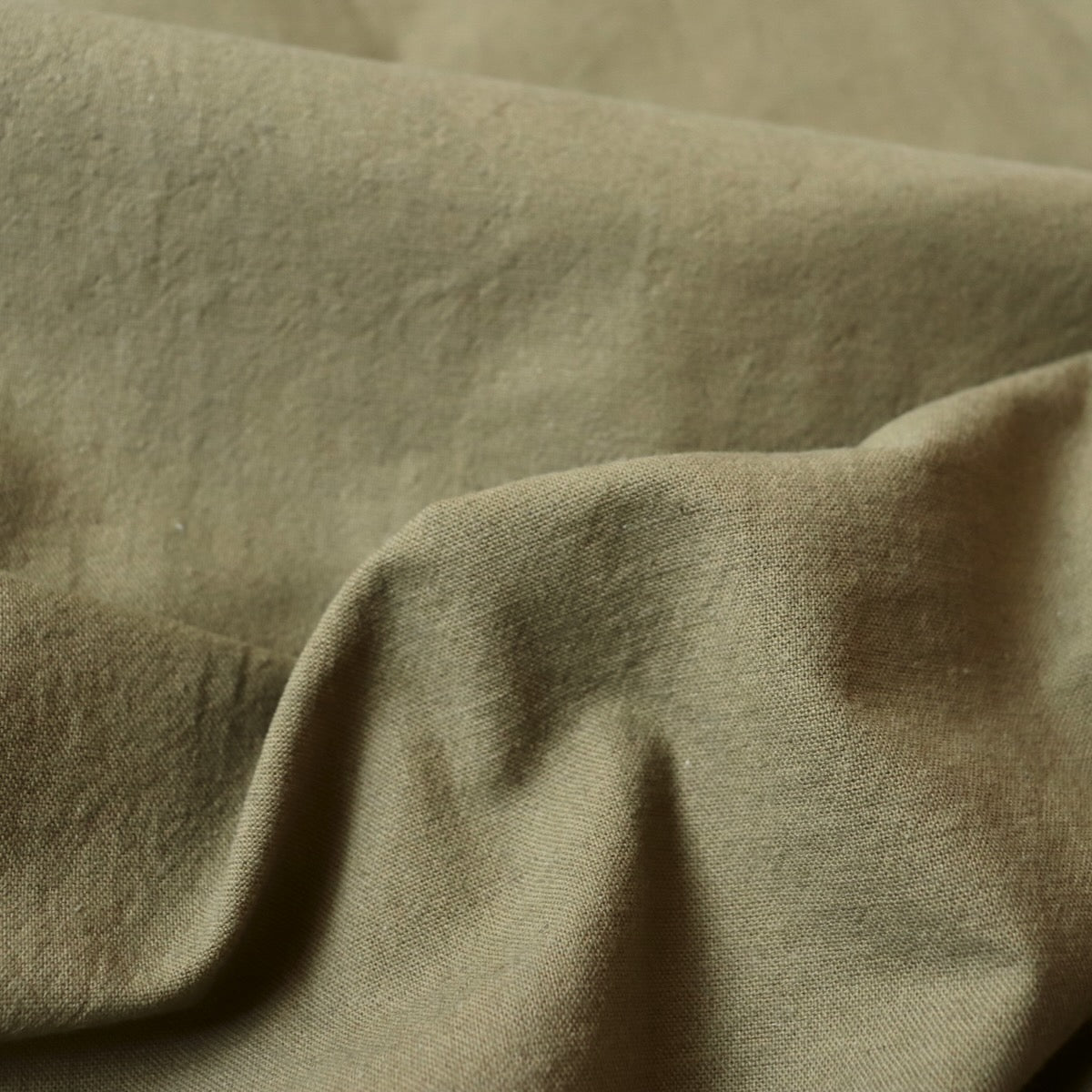 This mid-weight canvas is soft to the touch, with a pre-washed feel like a favorite garment that's been broken in just right. Warm moss green, with a great texture and drape from the hint of linen. Perfect for jackets, overalls, and bags, or try the Jones Trousers from Goldfinch Textile Studio.