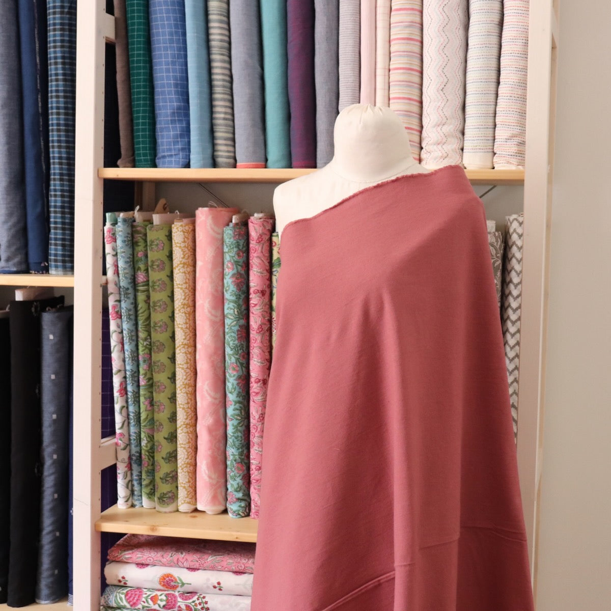 This mid-weight canvas is soft to the touch, with a pre-washed feel like a favorite garment that's been broken in just right. Cool pink with a lavender-grey undertone. Linen gives a hint of texture and drape. Perfect for jackets, overalls, and bags, or try the Jones Trousers from Goldfinch Textile Studio.