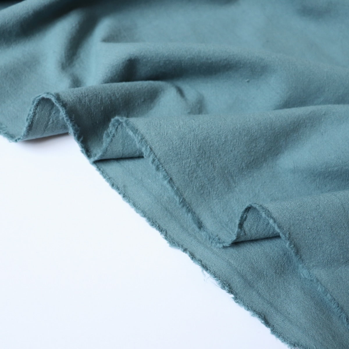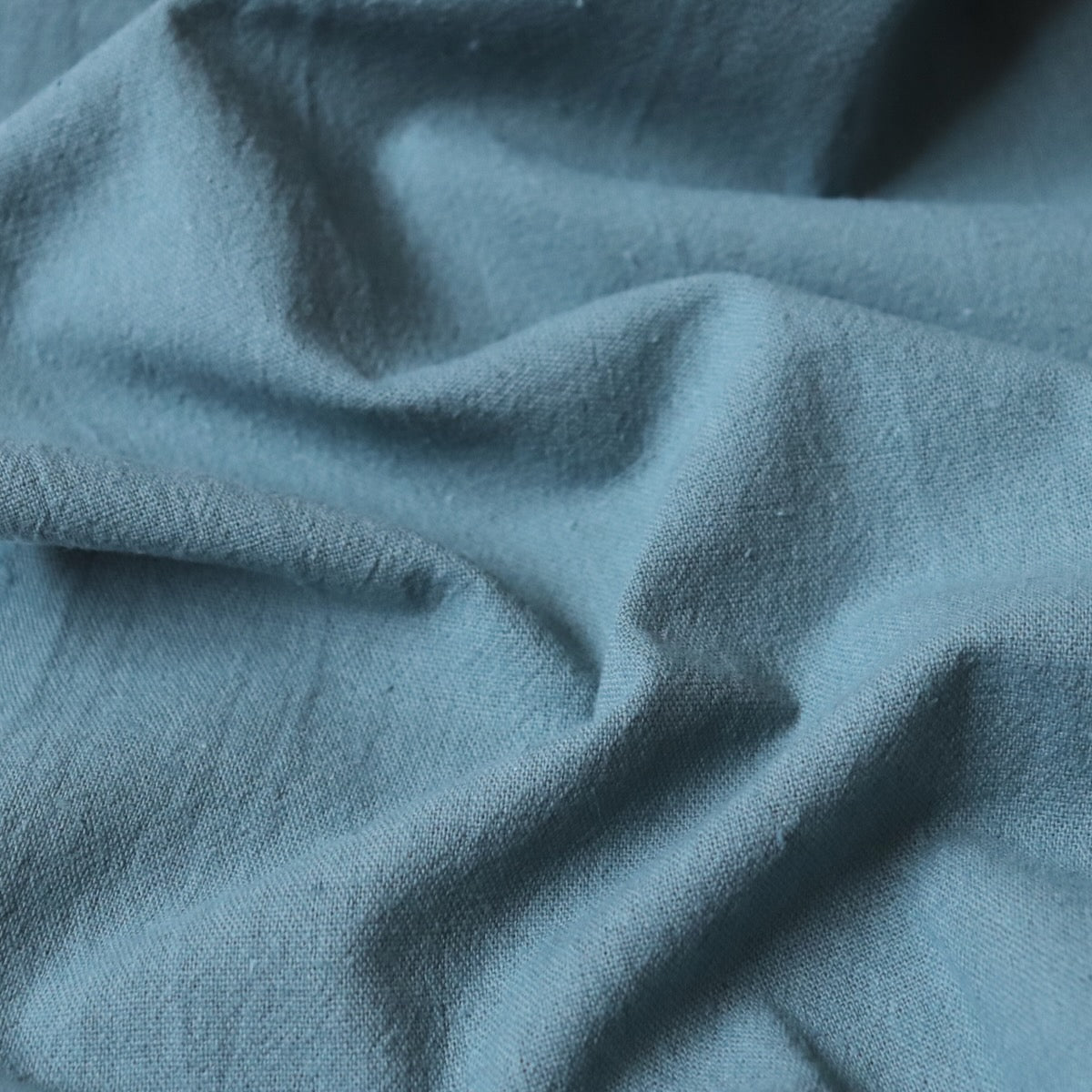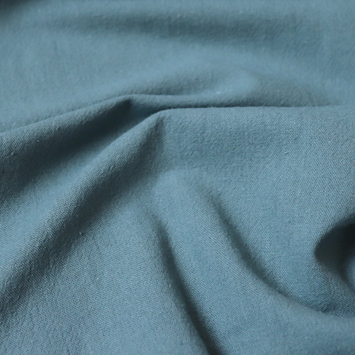 This mid-weight canvas is soft to the touch, with a pre-washed feel like a favorite garment that's been broken in just right. In a mysterious muted teal with a great texture and drape from the hint of linen. Perfect for jackets, overalls, and bags, or try the Jones Trousers from Goldfinch Textile Studio. The color is most accurate in the group photo.