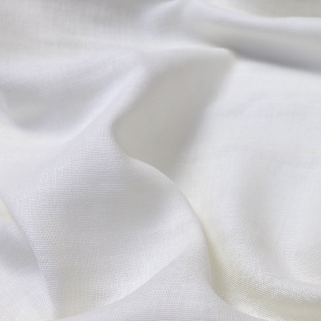 Linen lends substance and character to this double gauze. The fabric is incredibly soft and rather sheer, with uneven yarns that give it a homespun look. Soft white with occasion golden linen fibers. Pair it with the Rae Top pattern from Tessuti for understated luxury. (Some garments may need to be lined.)