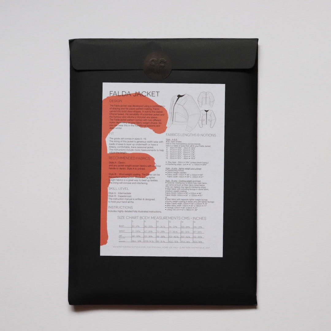 Recommended fabrics: The Falda jacket pattern comes with two different styles, depending on your fabric weight choice. A jacket weight cotton with patch pockets for the transitional seasons or blanket weight wool with welt pockets and full lining for deep winter warmth.