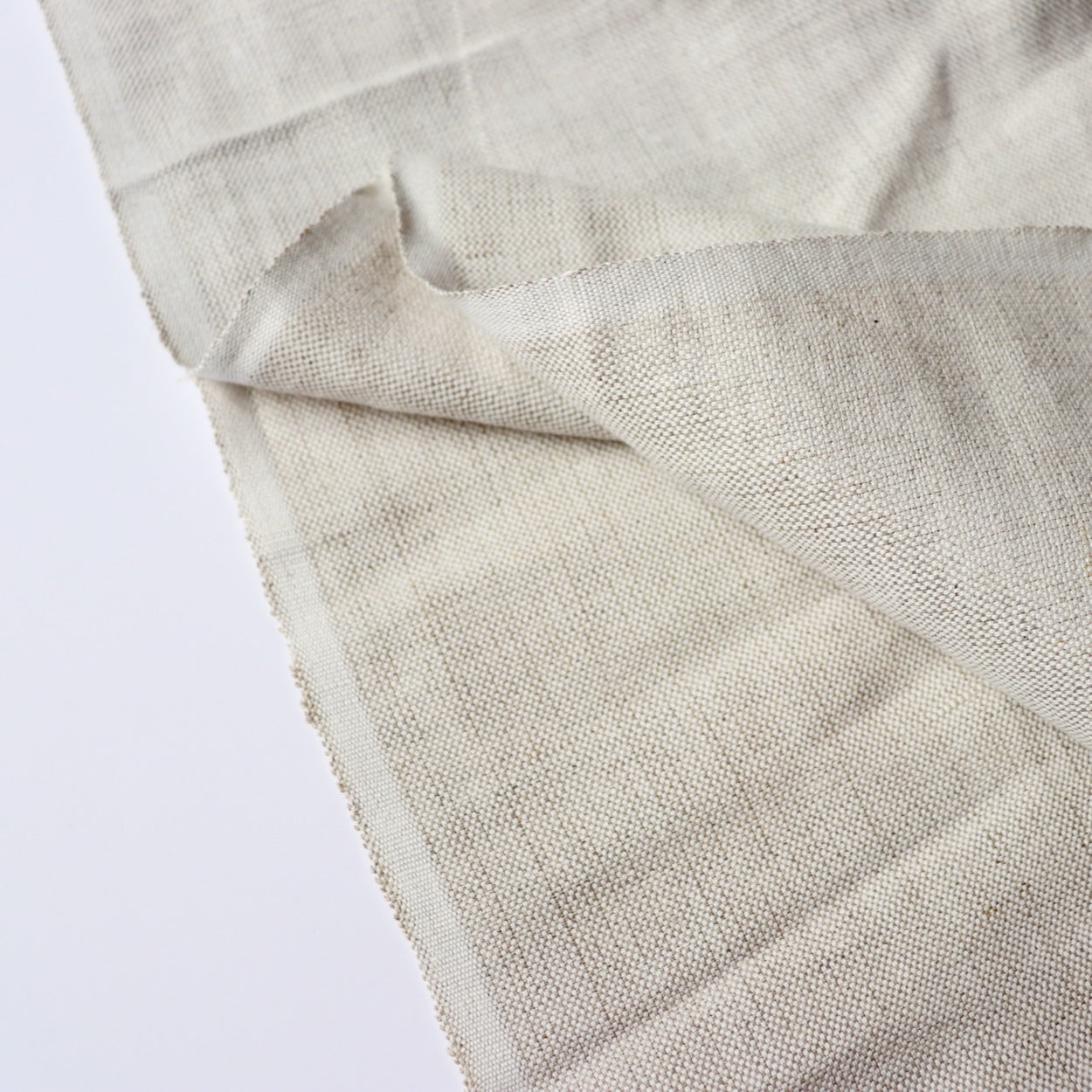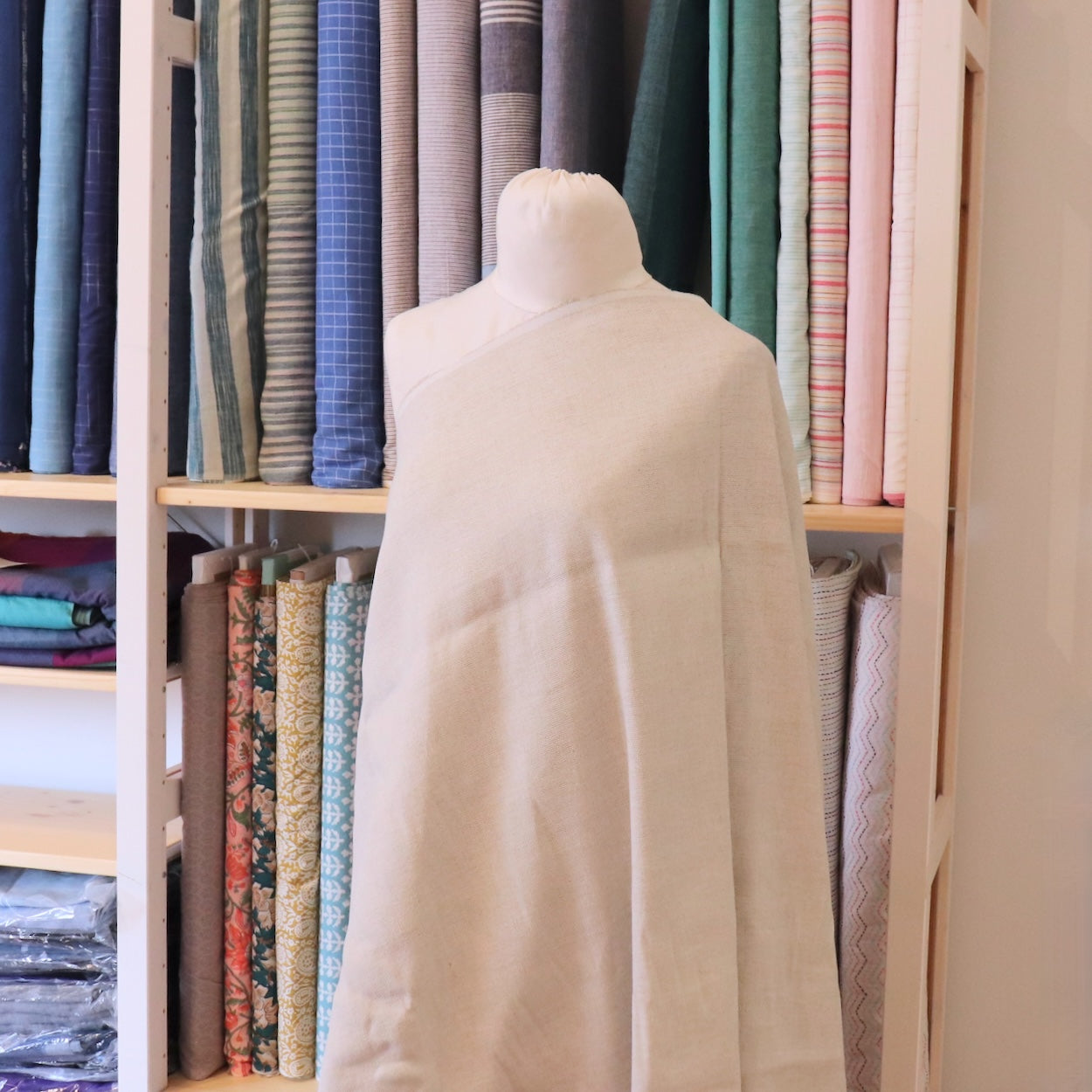Flecks of color in the flax-colored linen weft add richness to this unusual linen-cotton blend. The fabric has a slightly stiff yet springy body enlivened by the tweedy texture and natural undyed hues. In a mid-to-heavy weight for structured dresses and jackets, trousers, and bags. Make a new wardrobe staple with the Twig Pant from Style Arc, or the Asymmetric Midi Skirt from The Assembly Line. This fabric is not handwoven but has a similar character to our handlooms. It would also make a beautifully earthy base for embroidery.