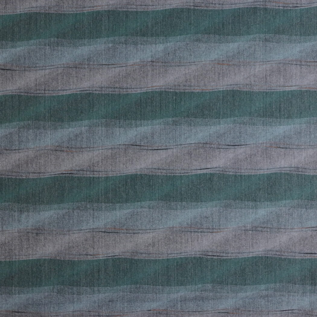 Undulating stripes in foggy shoreline colors on a complex yarn-dyed cotton. Different colors in warp and weft add depth, and accent threads add texture. Light- to mid-weight with some body and a slightly crisp hand. Perfect for heavier shirts or skirts and dresses that won’t need to be lined, like the Perth Dress from Carolyn And Cassie Pattern Co.