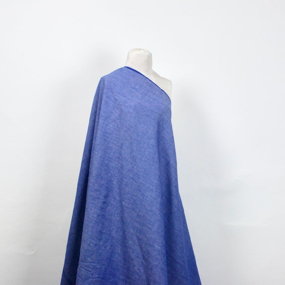 What appears to be minuscule white dots on royal blue is actually a teeny, tiny basketweave on this unusual (and unusually lovely!) fabric. The handwoven cotton is extra-soft and drapes beautifully due to the weave. From afar it looks like denim with a difference, but it’s actually a light-to-medium weight that will be perfect for shirts and dresses. Or try a weightless jacket, such as the Wiksten Haori that everyone is making.