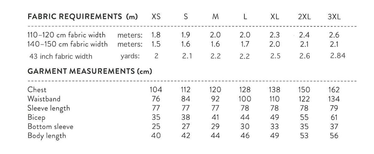 - Pattern sizes: (XS to L) or (XL to 3XL)