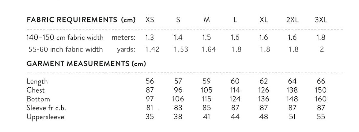 - Pattern sizes: (XS to L) or (XL to 3XL)