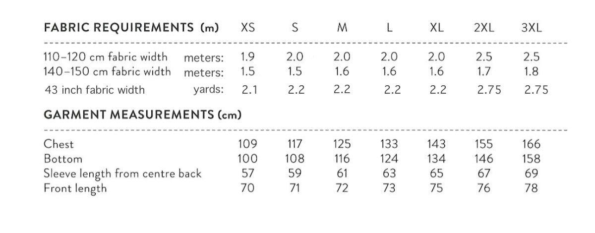 - Pattern sizes: (XS to L) or (XL to 3XL)